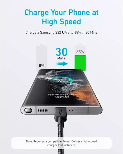 Anker 322 Braided USB 2.0 Cable USB-C male – USB-C 60W Μαύρο 1.8m (A81F6G11)