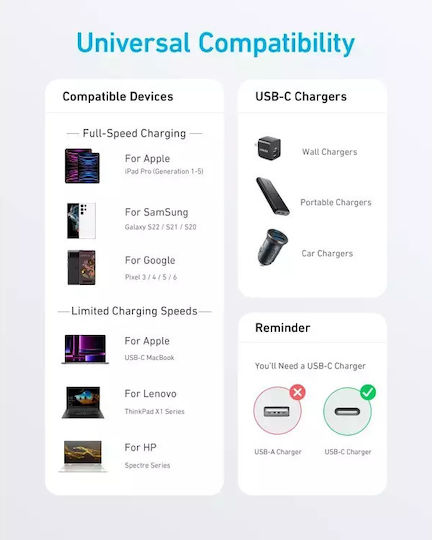 • Αξιόπιστη φόρτιση με συμβατότητα USB-IF
