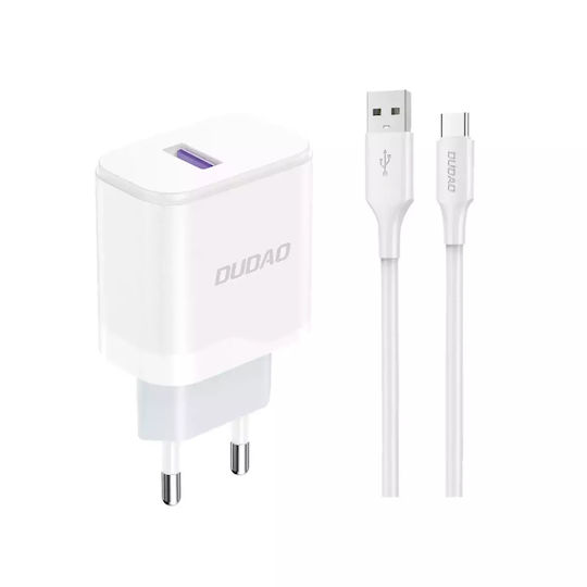 Dudao Φορτιστής με Θύρα USB-A και Καλώδιο USB-C 18W Λευκός (A20EU)