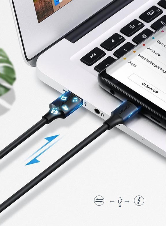 Καλώδιο της εταιρείας Ugreen με ακροδέκτες USB-C και USB-A για τη φόρτιση του κινητού σου και για συγχρονισμό και μεταφορά δεδομένων μεταξύ κινητού και υπολογιστή. Εξασφαλίζει ταχύτητα φόρτισης maximum 2A.