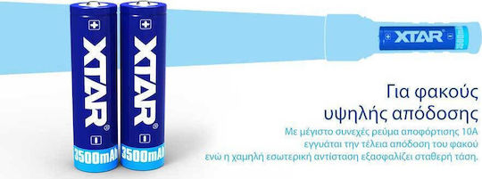 XTAR Επαναφορτιζόμενη Μπαταρία 18650 Li-ion 3500mAh 10A 3.7V 1τμχ